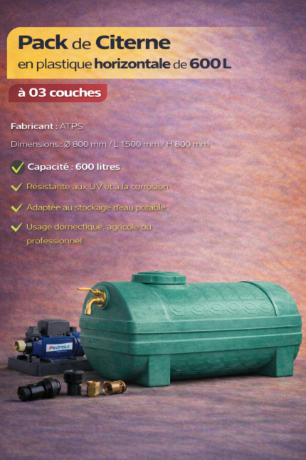 Pack de Citerne en plastique horizontale 600L à 03 couches