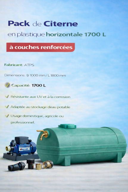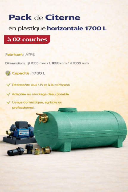 Pack de Citerne en plastique horizontale 1700 L à 02 couches