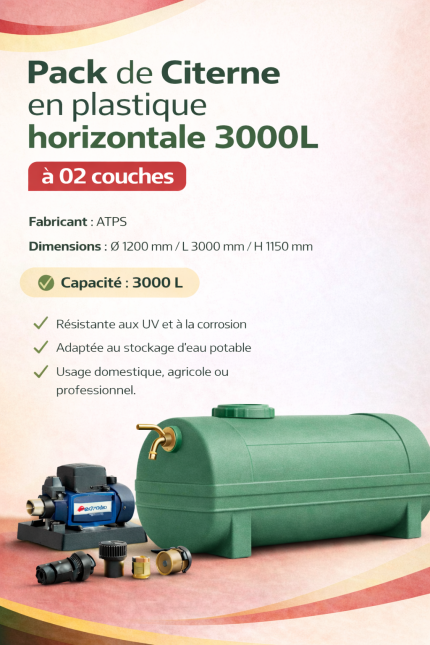 Pack de Citerne en plastique horizontale 3000L à 02 couches