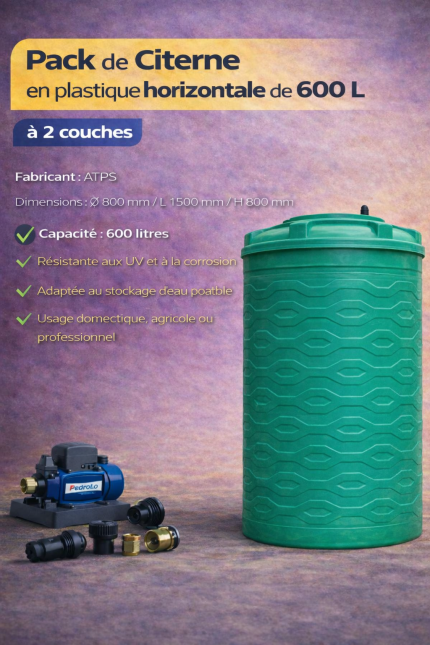 Pack de Citerne en plastique horizontale 600 L à 02 couches
